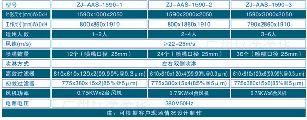 可以减低进出洁净区所带来的污染问题,经过高效过滤器喷出高速洁净气流,有效而迅速的清除人身服饰或物料从非洁净区所带来的尘埃粒子及细菌。