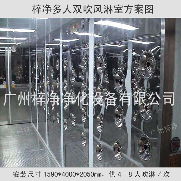 多人双吹风淋室又称风淋通道、人淋通道、吹淋通道、风淋过道、风淋走廊、浴淋通道、空气吹淋通道等。