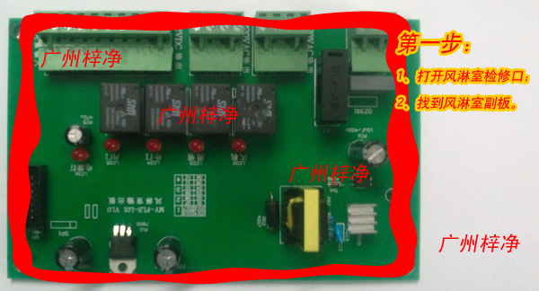 第一步:打开风淋室检修口,找到风淋室控制器副板(注意:风淋室控制器包括主板和副板)