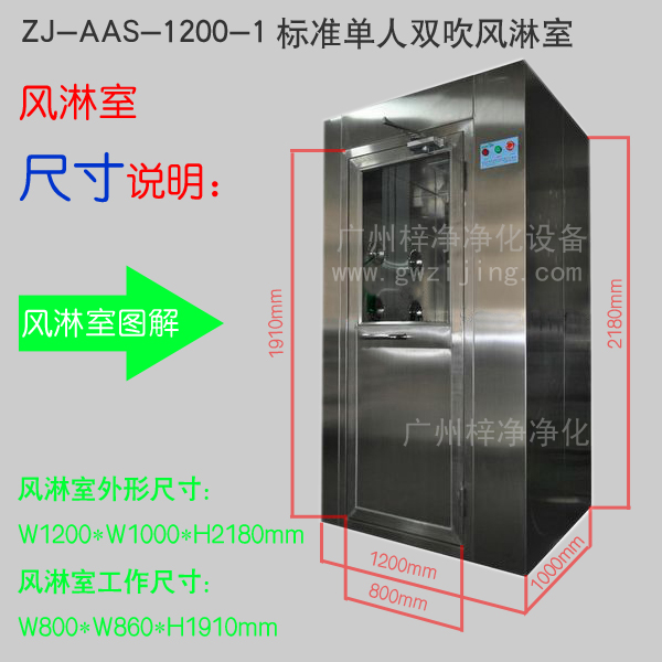 ZJ-AAS-1200-1标准单人双吹风淋室尺寸说明实物效果图解析