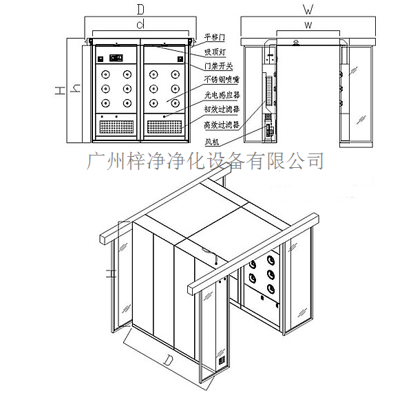 自动门风淋室在洁净室内,在动态情况下,自动门风淋室细菌及尘埃的最大发生源是操作者,自动门风淋室用来当操作进入洁净室设备之一。