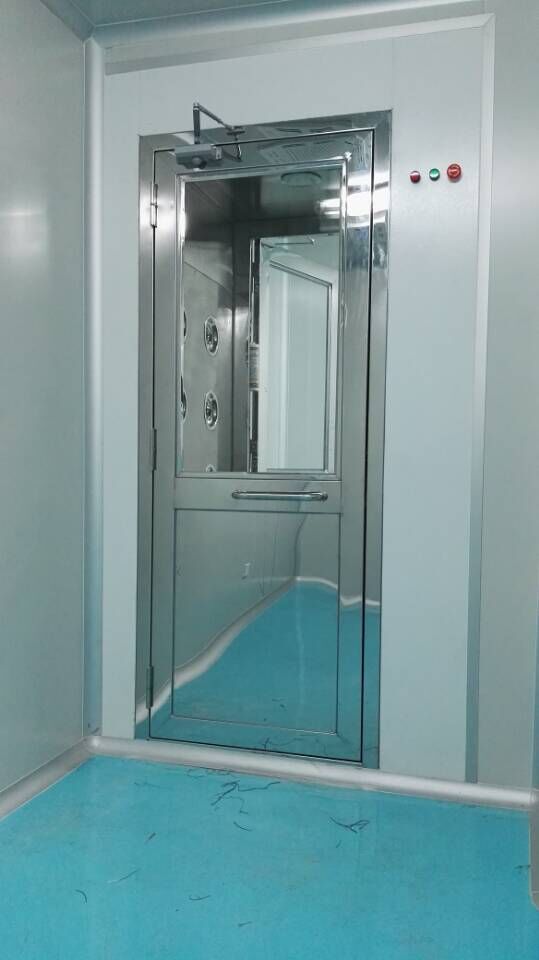 单人风淋门定义:为了减少由于人员进出所带来的大量尘埃粒子,经高效过滤器过滤后的洁净气流由可旋转喷嘴从各个方向喷射至人身上,有效而迅速清除尘埃粒子,清除后的尘埃粒子再由初、高效过滤器过滤后重新循环到风淋区域内。
