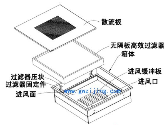 4、高效送风口安装前,需现场对送风口包装进行外观检查,内容包括滤纸、密封胶和框架有无损坏;边长、对角线和厚度尺寸是否符合要求;框架有无毛刺和锈斑(金属框);有无产品合格证,技术性能是否符合设计要求。