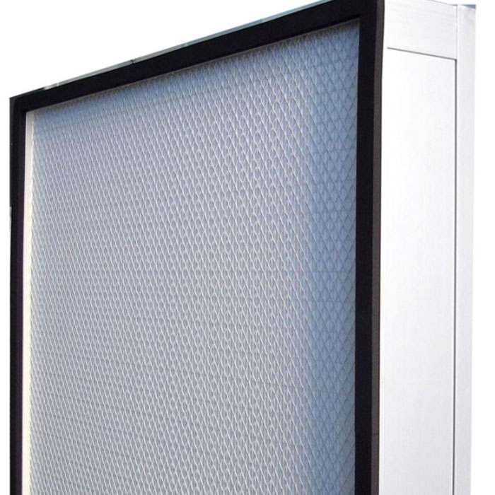 HEPA高效过滤器间隔线为汉高热溶胶;密封为进口汉高热溶胶、聚氨脂;外框材质为表面经过阳极处理的铝型材、铝板、镀锌板或木质;双面附菱形钢板网和铝网。