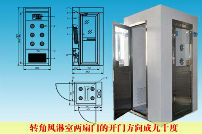 4、转角风淋室采用软键轻触式调节开关,有外形美观,寿命长,易清洁的优点。