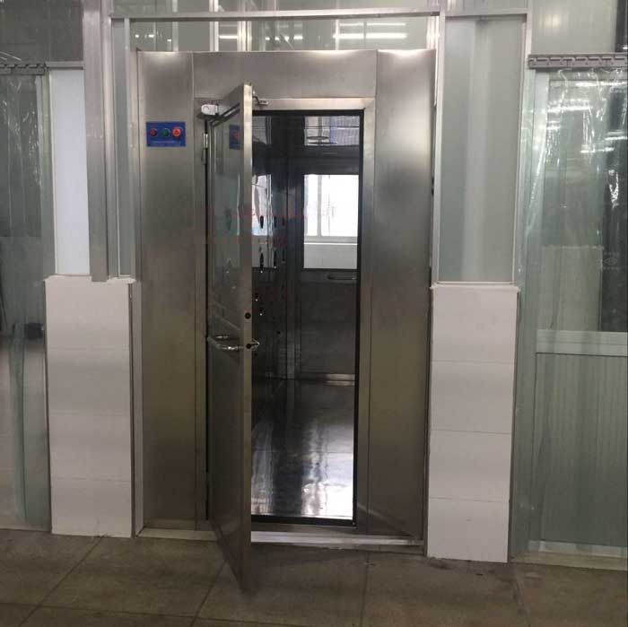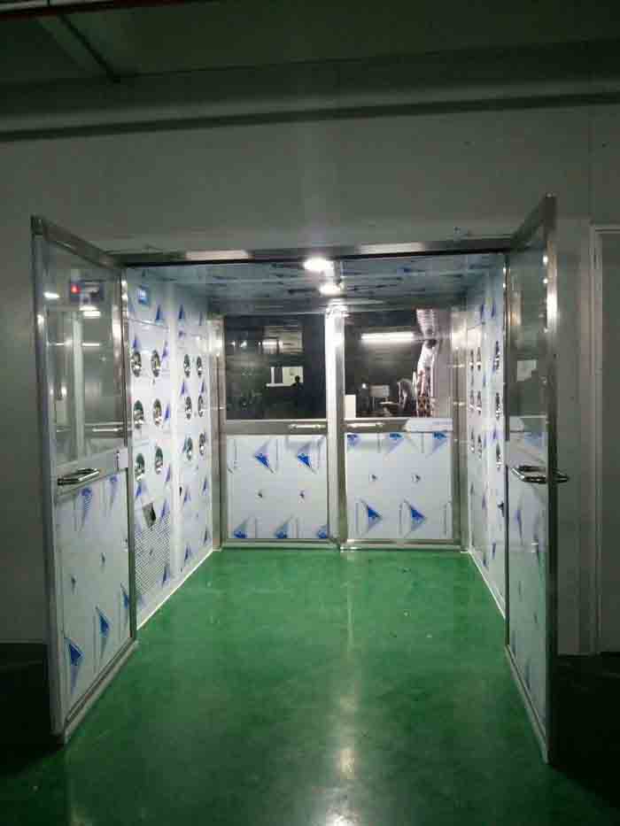 风淋室(货淋室)是一种通用性较强的局部净化设备,安装于洁净室与非洁净室之间的隔墙处,用于人员或物体进入洁净区时的吹淋除尘。使用后可有效地减少尘源进入洁净区,使洁净区保持正常的工作状态。吹淋室(风淋室)是用于吹除人、物表面附着的尘埃、同时起气闸作用,防止未经净化的空气进入洁净区域,是对人身、物料净化和防止室外空气侵入洁净区的有效设备,可与洁净室和洁净厂房配套使用。风淋室可按照用户需要配加热器,冬天可以加热,温度可调,风淋室除有一定净化效果外,它作为进入洁净区的一个分界,还有警示作用,有利于规范洁净室人员在洁净室内的活动。