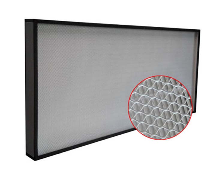 采用超细玻璃纤维纸作滤料,胶板纸、铝箔板等材料折叠作分割板,聚氨酯密封胶