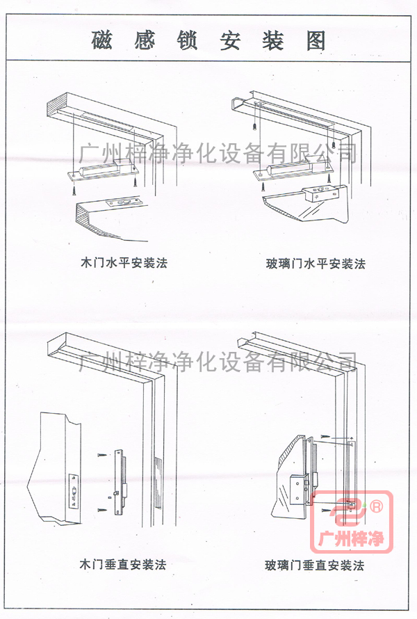 电子互锁联锁磁感锁使用安装说明书:指导用户正确使用电子互锁联锁磁感锁,及各种门体上的安装方法,如木门水平安装方法,玻璃门水平安装方法,木门垂直安装方法,玻璃门垂直安装方法.