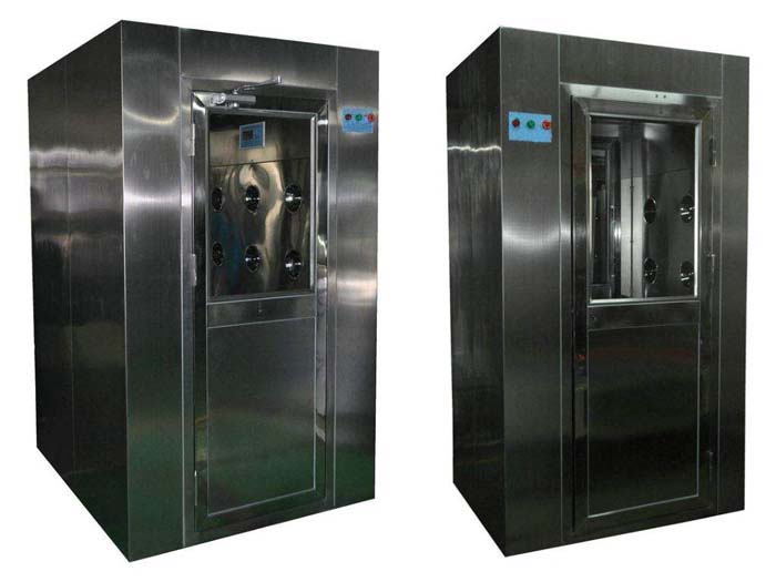 风淋室是人/货进入洁净室通道,起到气阀室密闭洁净室的作用。可以减低人/货进出洁净区所带来的污染问题。为了减少由于人/货进出所带来的大量尘埃粒子,经过空气过滤器过滤后的高速洁净气流由可旋转喷射至人/货上,有效而迅速的清除人/货从非洁净区所带来的尘埃粒子及细菌。