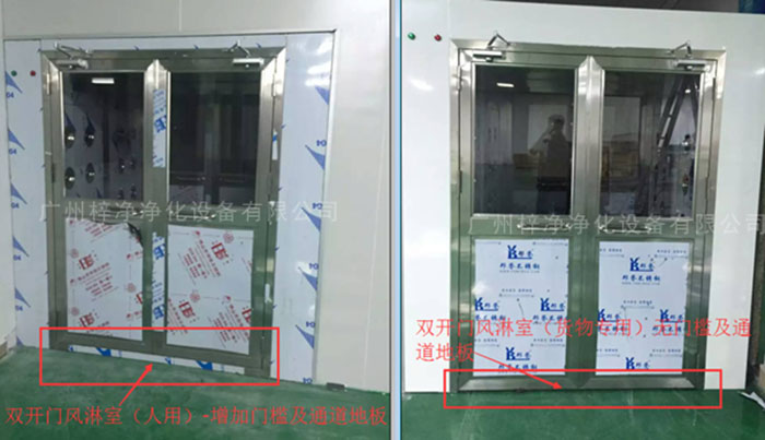 2、人淋风淋室设置门槛及通道地板–保证风淋室的密封性;