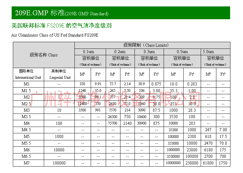 209E.GMP标准(209E.GMP Standard)美国联邦标准FS209E的空气洁净度级别Air Cleanliness Class of US Fed Standard FS209E