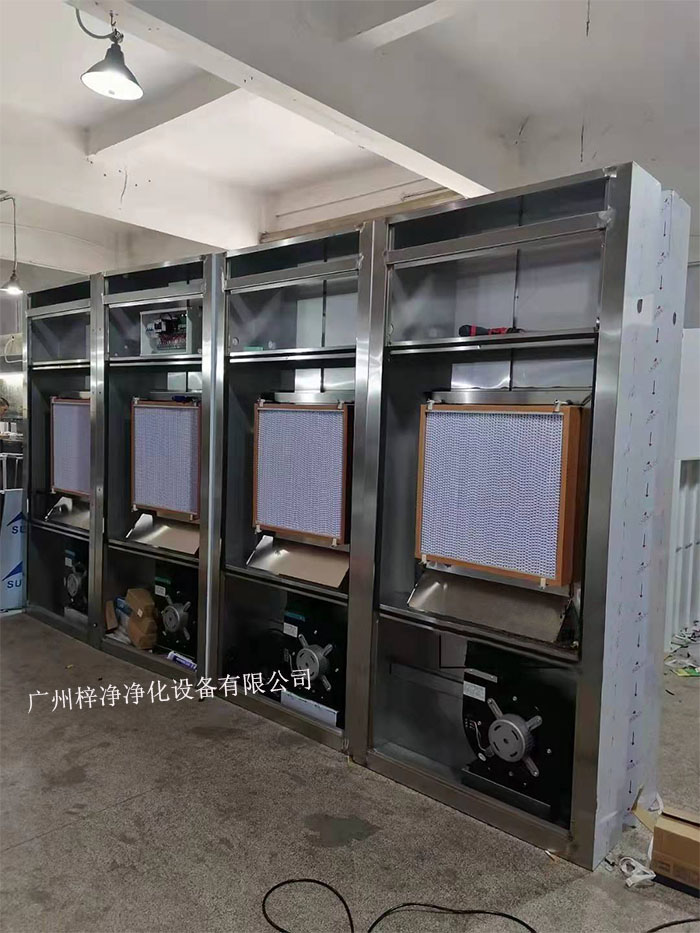 4、当更换风淋室初效空气过滤器后,仍不能提高风速则说明高效空气过滤器已经堵塞,造成阻力增大,则应更换高效空气过滤器。