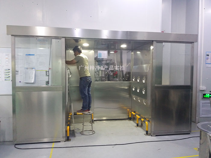 2、自动门货淋室的底板通常由不锈钢制成,箱体用不锈或钢板折弯焊接表面为乳白色烤漆。