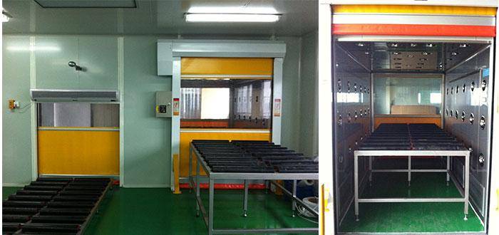 客户在选择货淋室的时候应该根据工厂车间生产所需要的货物周转形式来选择合适自身的形式;通常手动双开门的适用于货料非频繁的情况下使用;移门风淋室适用小型推车,一般应用于电子产品车间;而快速卷帘门货淋室一般适用于大型包装车间的物流铲车,叉车应用,可以快速的频繁开启;