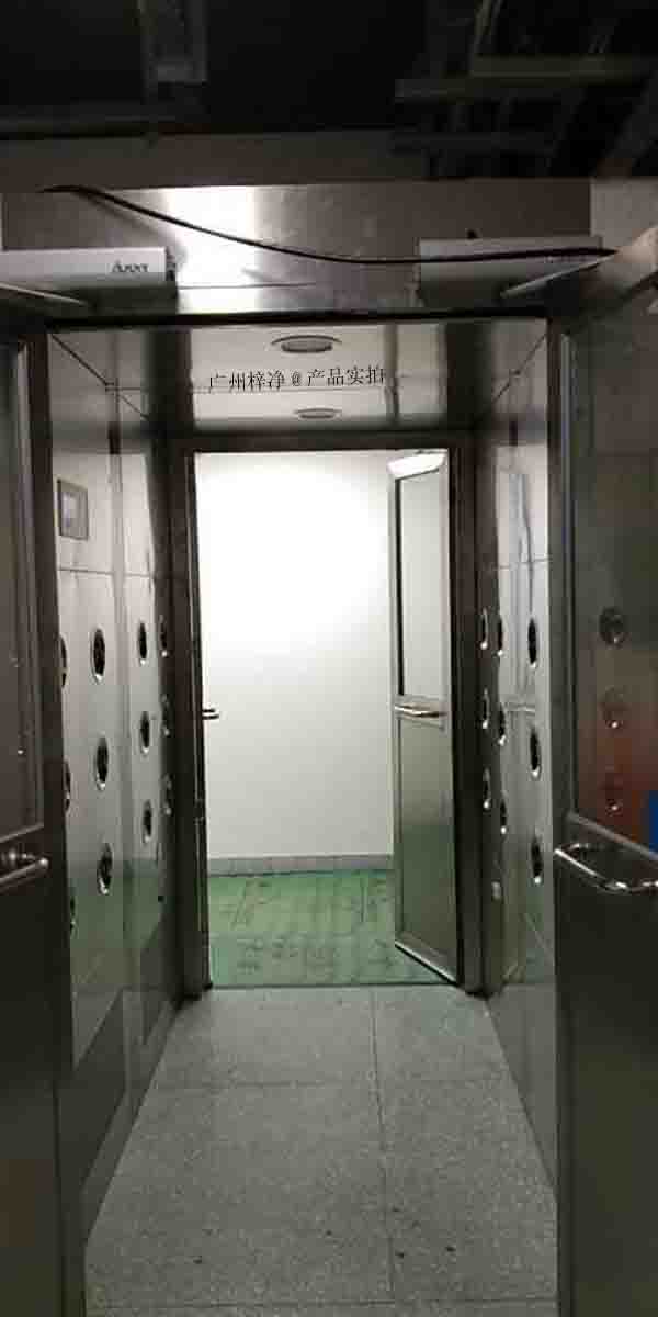 4、采用新型设计理念设计的送风吹淋系统风速可达到25m/s~32m/s的超强风速,确保进入洁净室的人员及货物达到彻底除尘的完美效果。