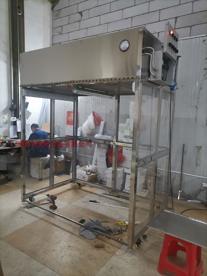 产品结构由不锈钢板或喷塑钢板组成,电脑轻触点控制,风机为无级调速,风量任意调节,配置带紫外线灭菌灯,规格尺寸可根据客户要求定做。