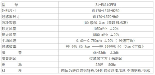 3、风速平稳、使用寿命长。适合于洁净度Class1-1000级无尘室。