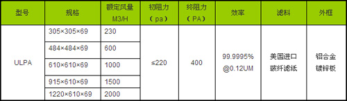 ULPA超高效过滤器规格尺寸及技术参数: