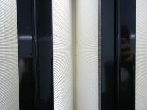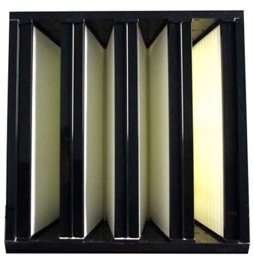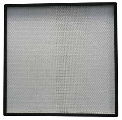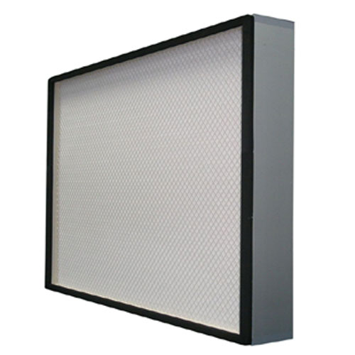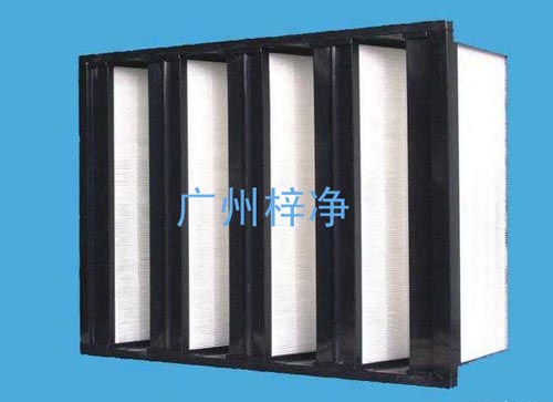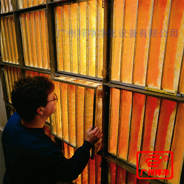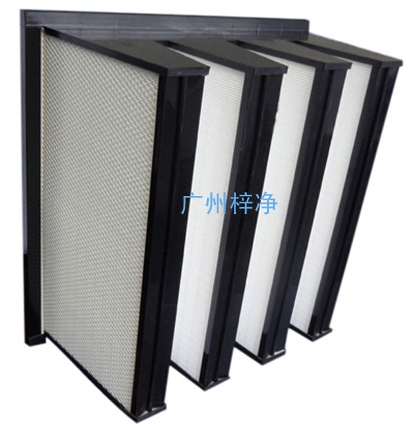 此处过滤器的效率规格一般为全部都是有隔板结构,褶距约8mm的玻璃纤维滤纸由瓦楞状的铝箔隔开。由于要耐高温,滤纸与过滤器金属外框间的粘合与密封问题是关键,密封结构要可靠,密封材料的成本又不能太高。